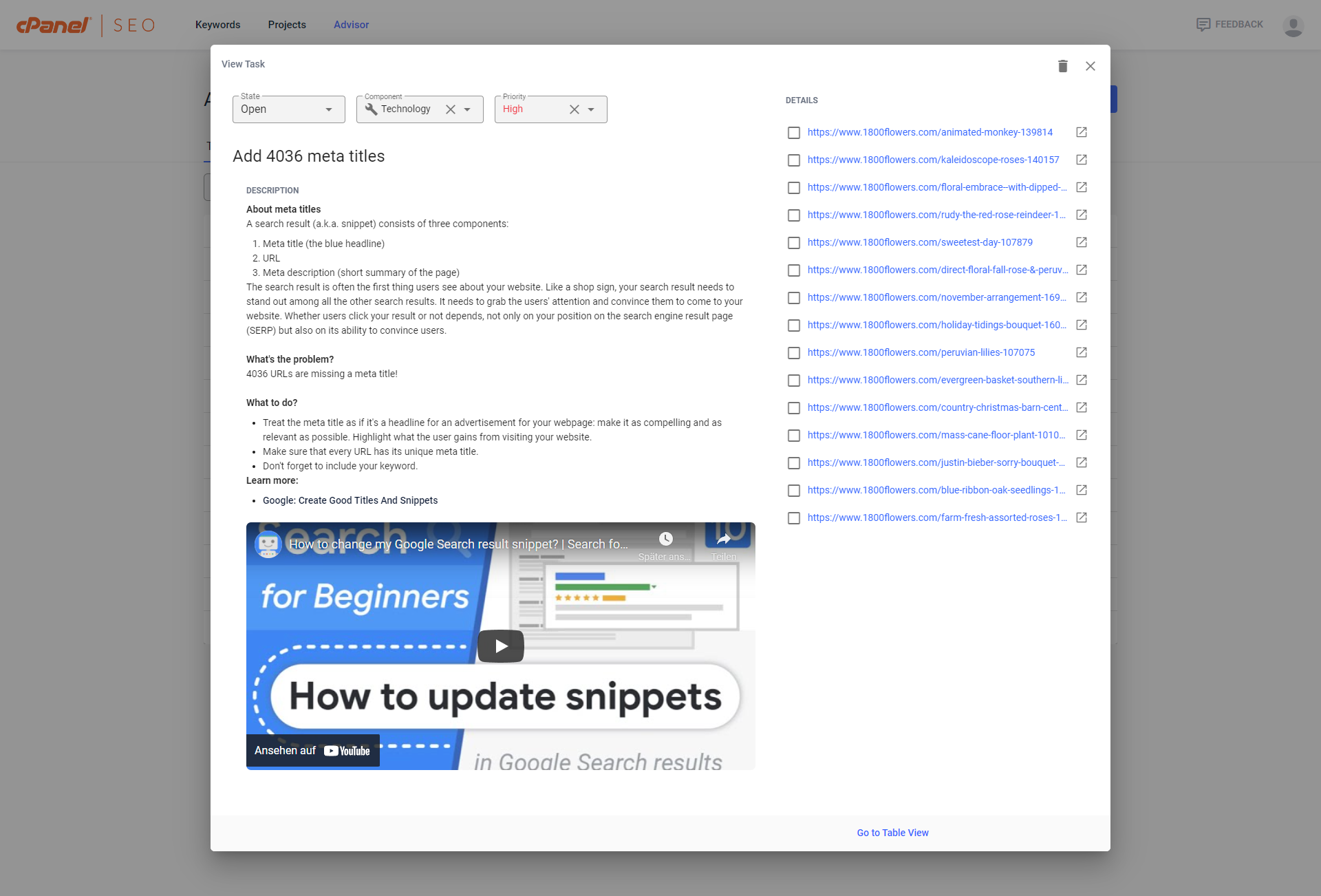 cPanel SEO was designed to provide immediate value for your personal website or your clients’ sites, from an initial site audit through recommendations to improve your search engine results.